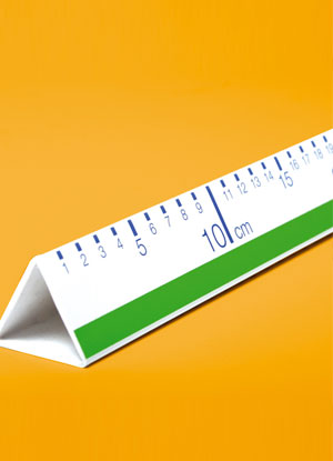 Številski meter trikotne oblike, z 100 cm skalo na dveh straneh metra.