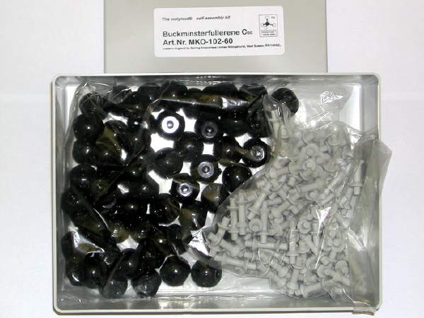 Komplet vsebuje vse potrebne dele za sestavo modela fulerena.